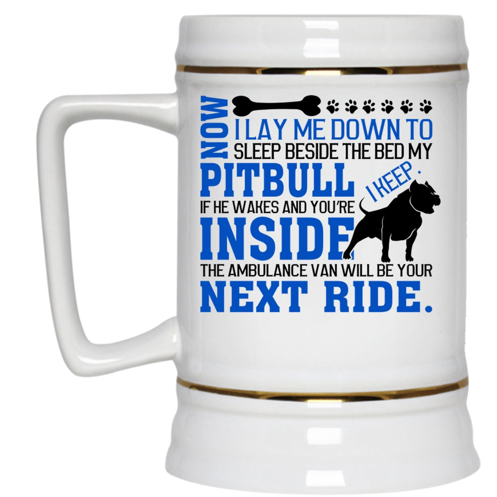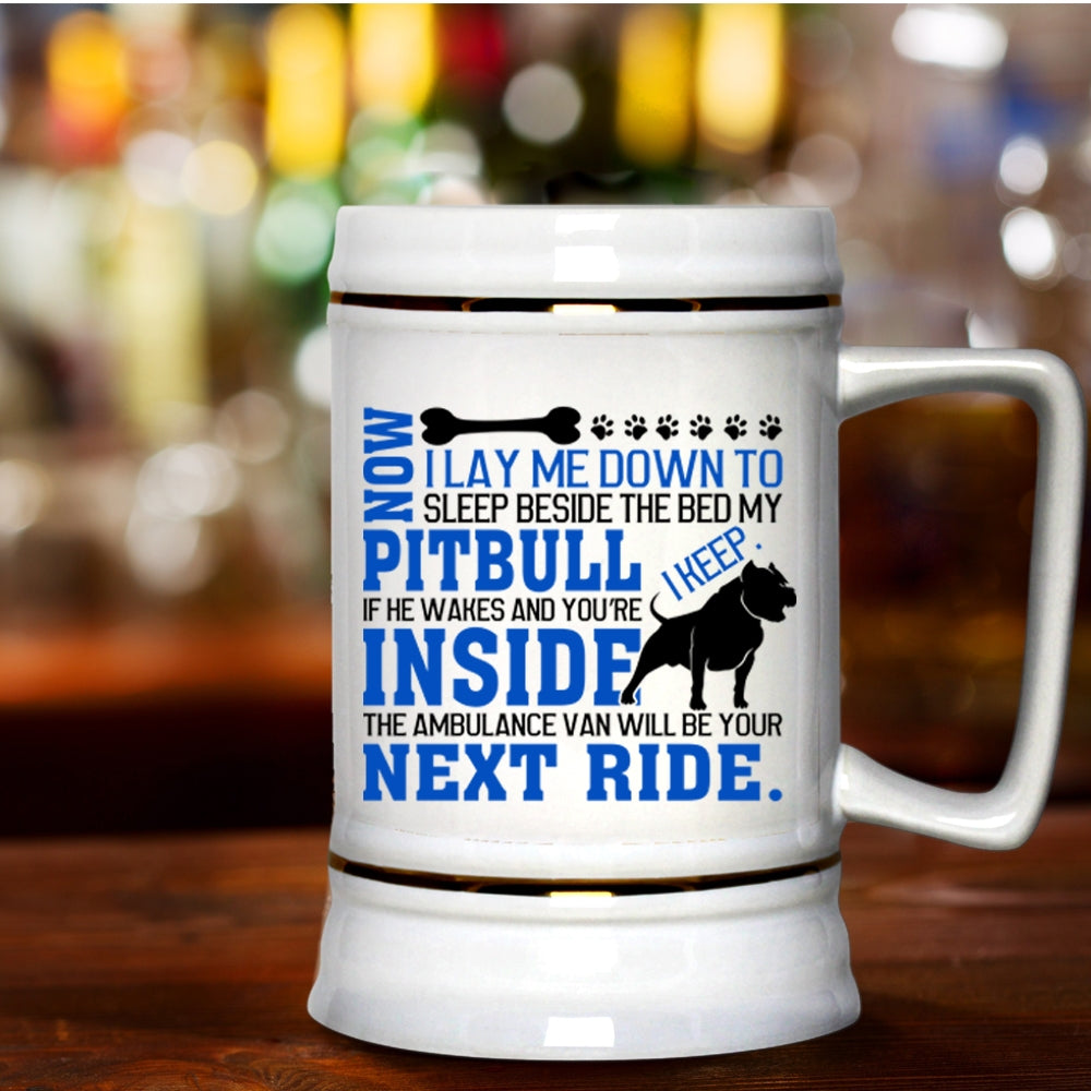 Cool Pit Bull Beer Stein 22oz, Sleep Beside The Bed My Pitbull Beer Mug
