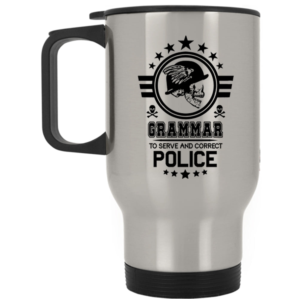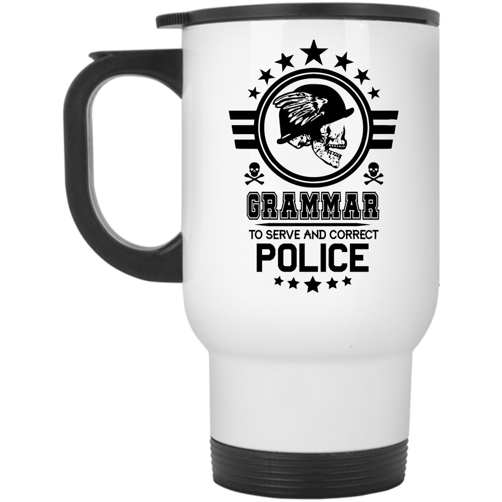 Cool Police Officer Travel Mug, Grammar To Serve And Correct Police Mug