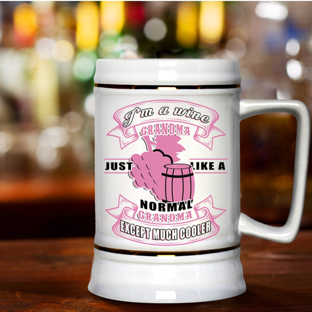 Cool Wine Grandma Beer Stein 22oz, I'm A Wine Grandma Beer Mug