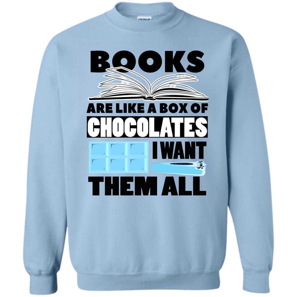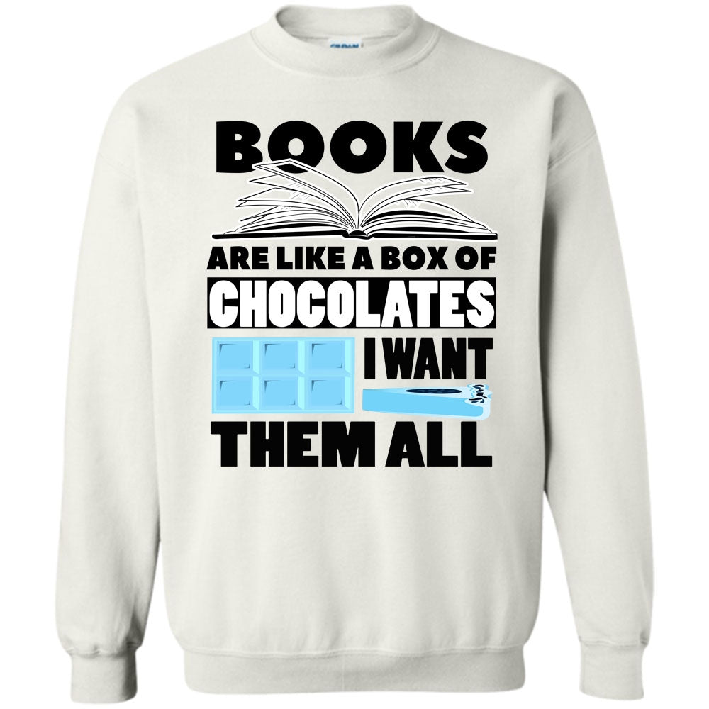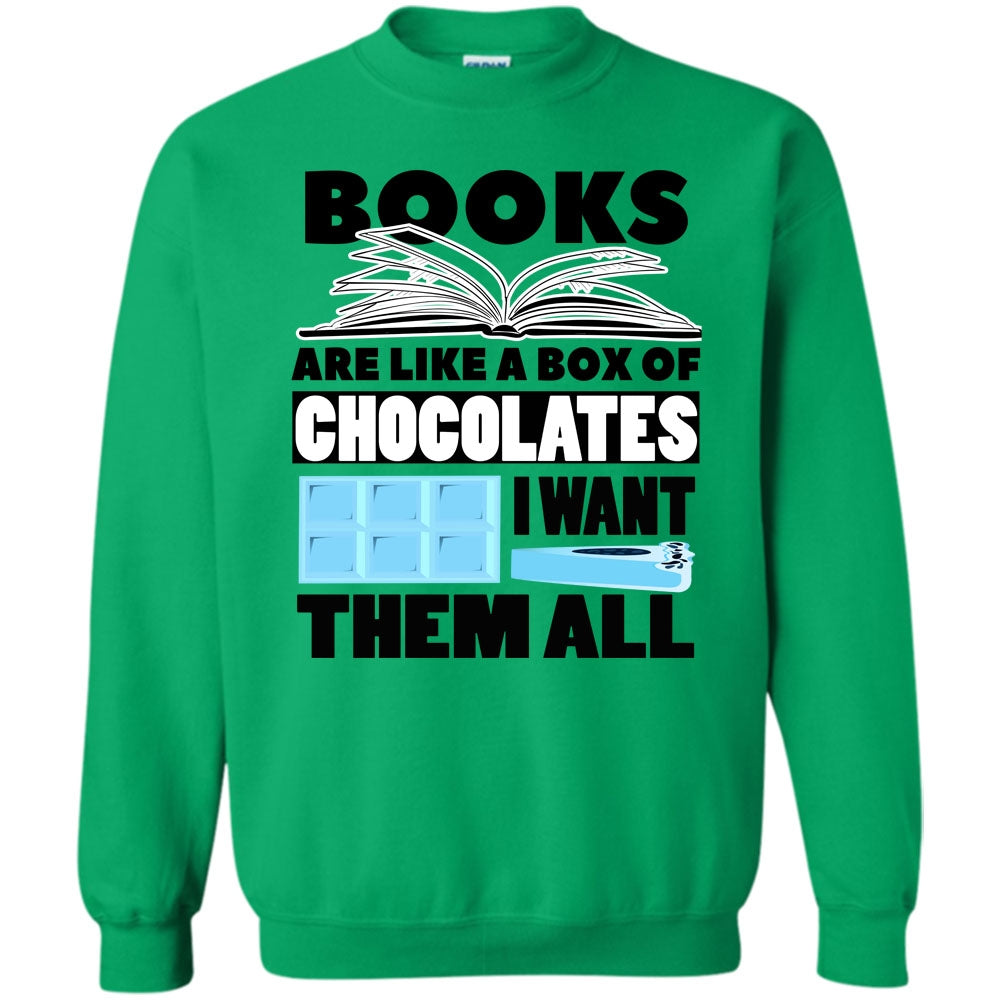 Coolest Book T Shirt, Books Are Like A Box Of Chocolates Sweatshirt