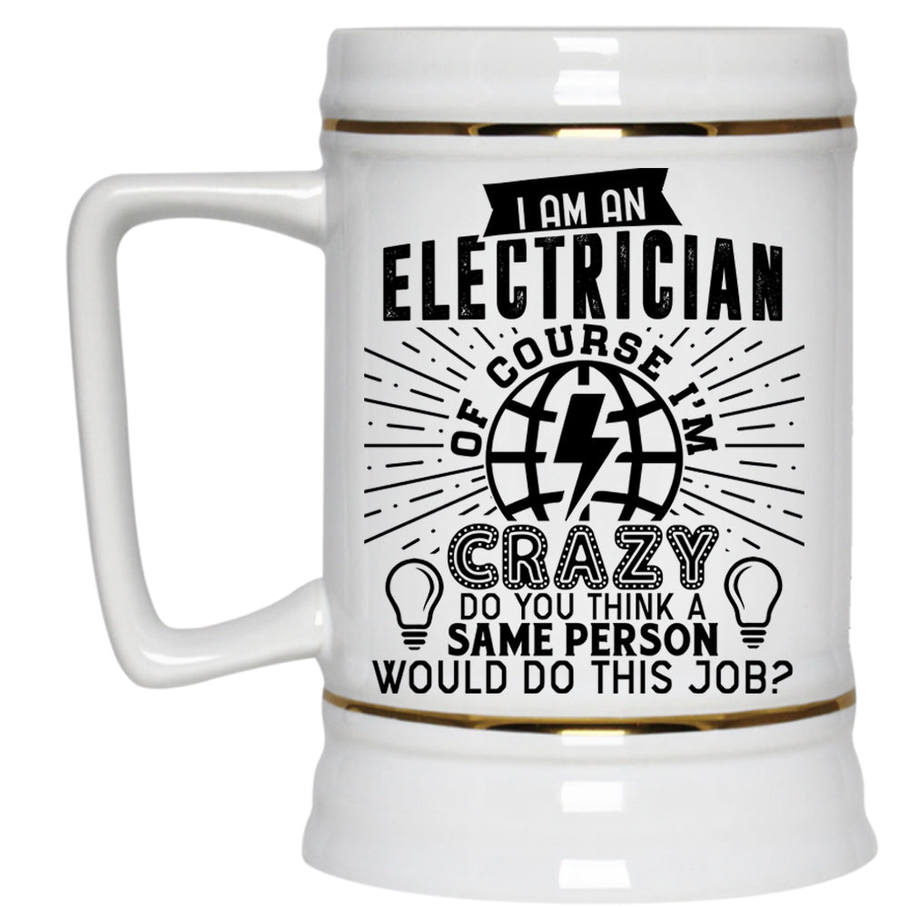 Crazy Electricians Beer Stein 22oz, I Am An Electrician Beer Mug
