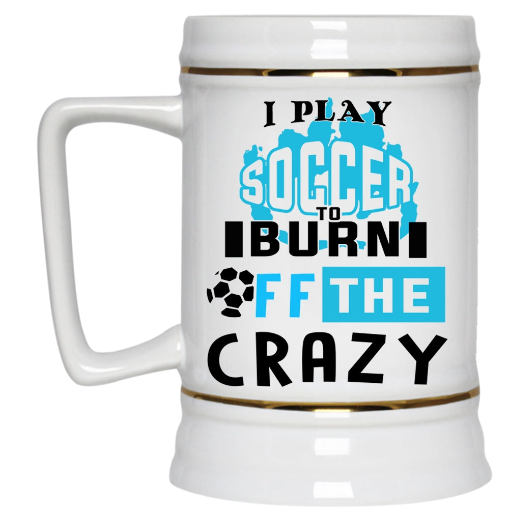 Crazy Soccer Player Beer Stein 22oz, I Play Soccer To Burn Off The Crazy Beer Mug