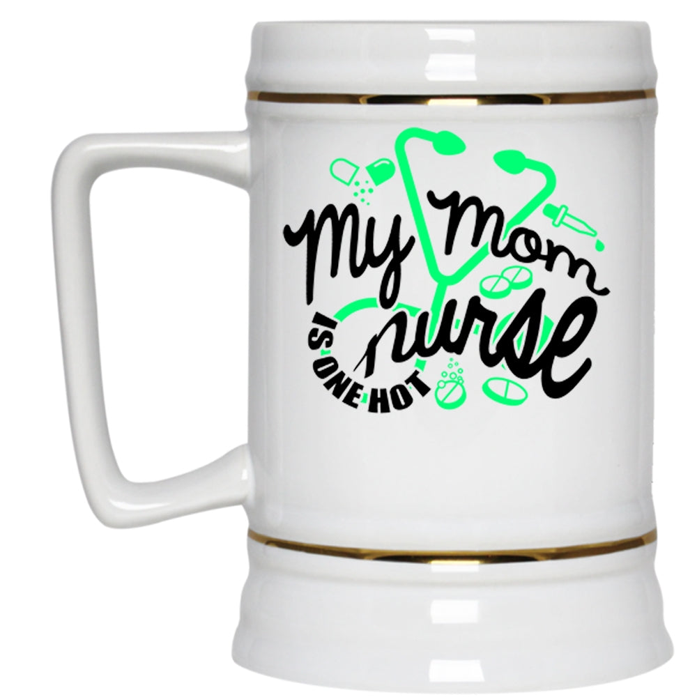 Cute Gift For Mom Beer Stein 22oz, My Mom Is One Hot Nurse Beer Mug