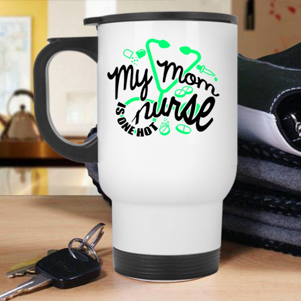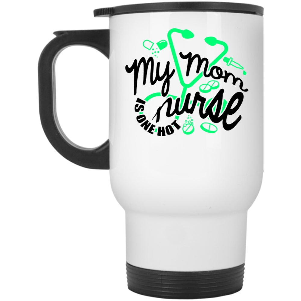 Cute Gift For Mom Travel Mug, My Mom Is One Hot Nurse Mug