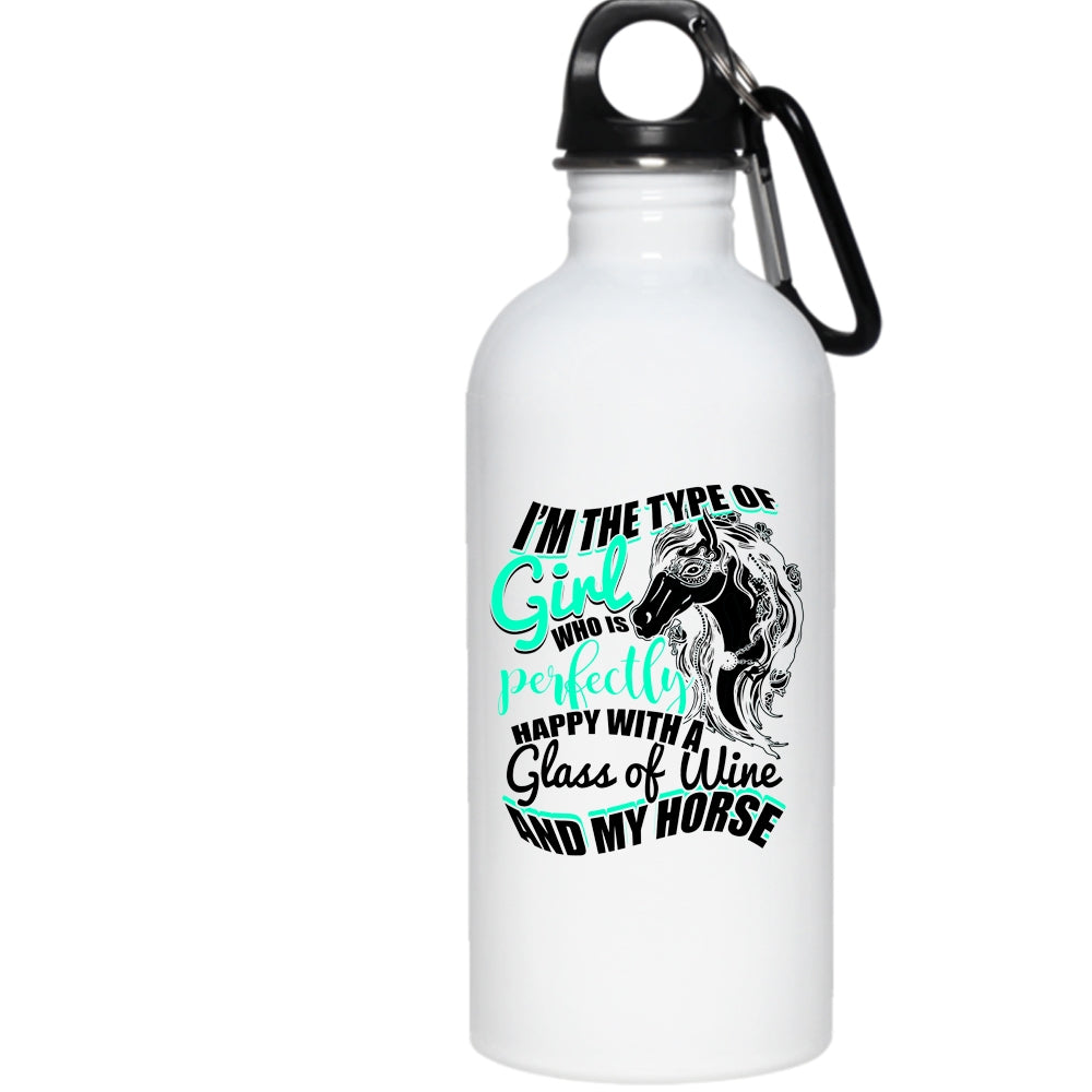 Cute Girls 20 oz Stainless Steel Bottle,Happy With A Glass Of Wine And My Horse Outdoor Sports Water Bottle