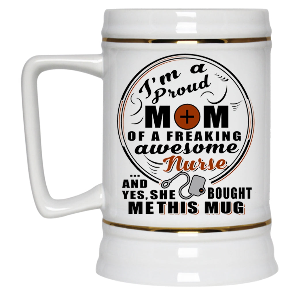 Cute Nurse's Mom Beer Stein 22oz, I'm A Proud Mom Of An Awesome Nurse Beer Mug