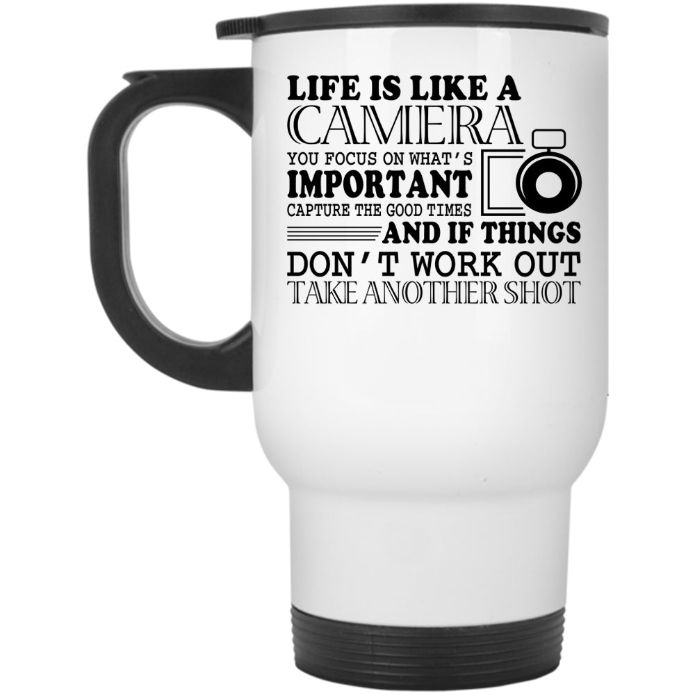 Cute Photographers Travel Mug, Life Is Like A Camera Mug