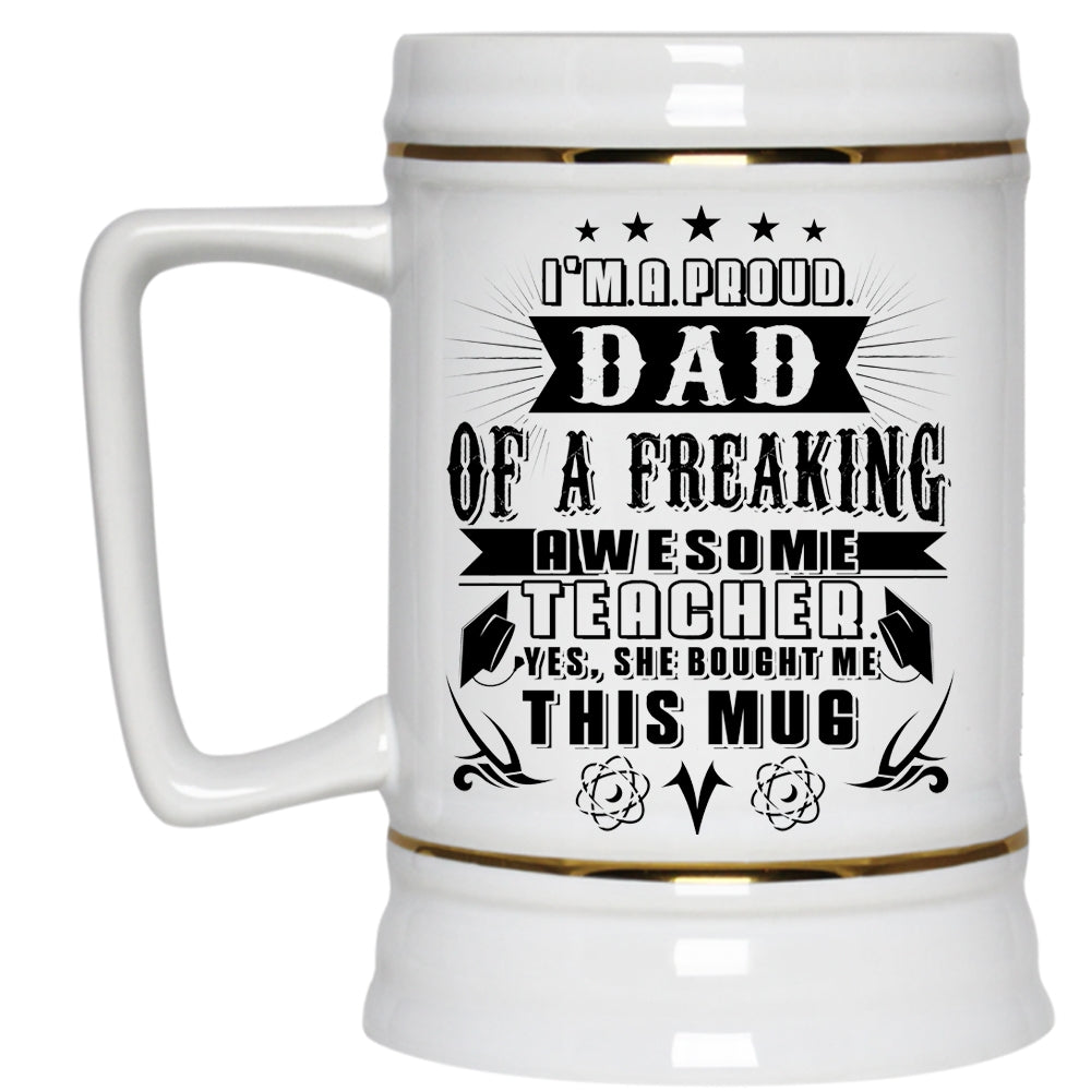 Cute Teacher's Dad Beer Stein 22oz, I'm A Proud Dad Of An Awesome Teacher Beer Mug