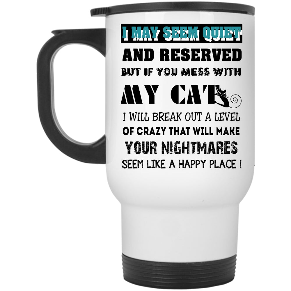 Don't Mess With My Cats Travel Mug, I May Seem Quiet And Reserved Mug