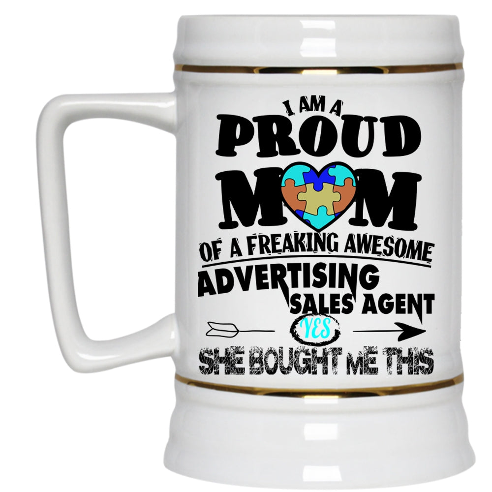 Funny Beer Stein 22oz, I Am A Proud Mom Of An Advertising Sales Agent Beer Mug