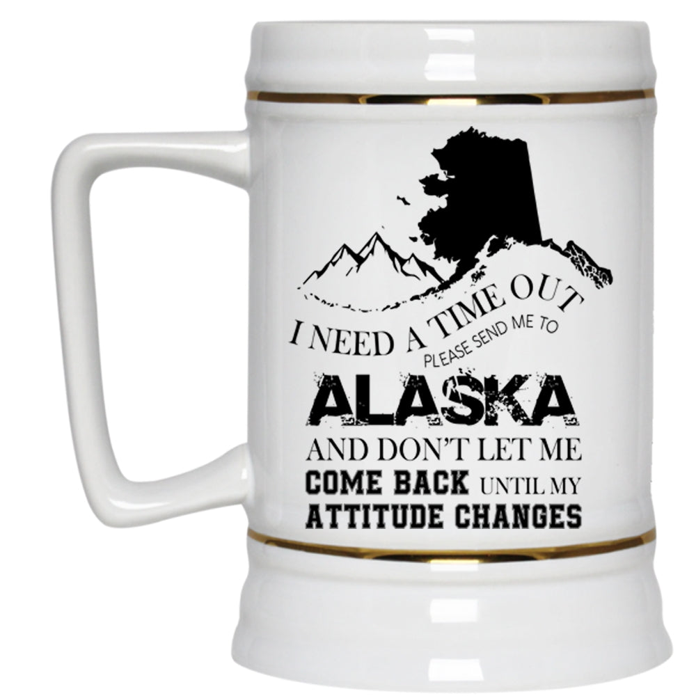 Funny Beer Stein 22oz, I Need A Time Out Please Send Me To Alaska Beer Mug