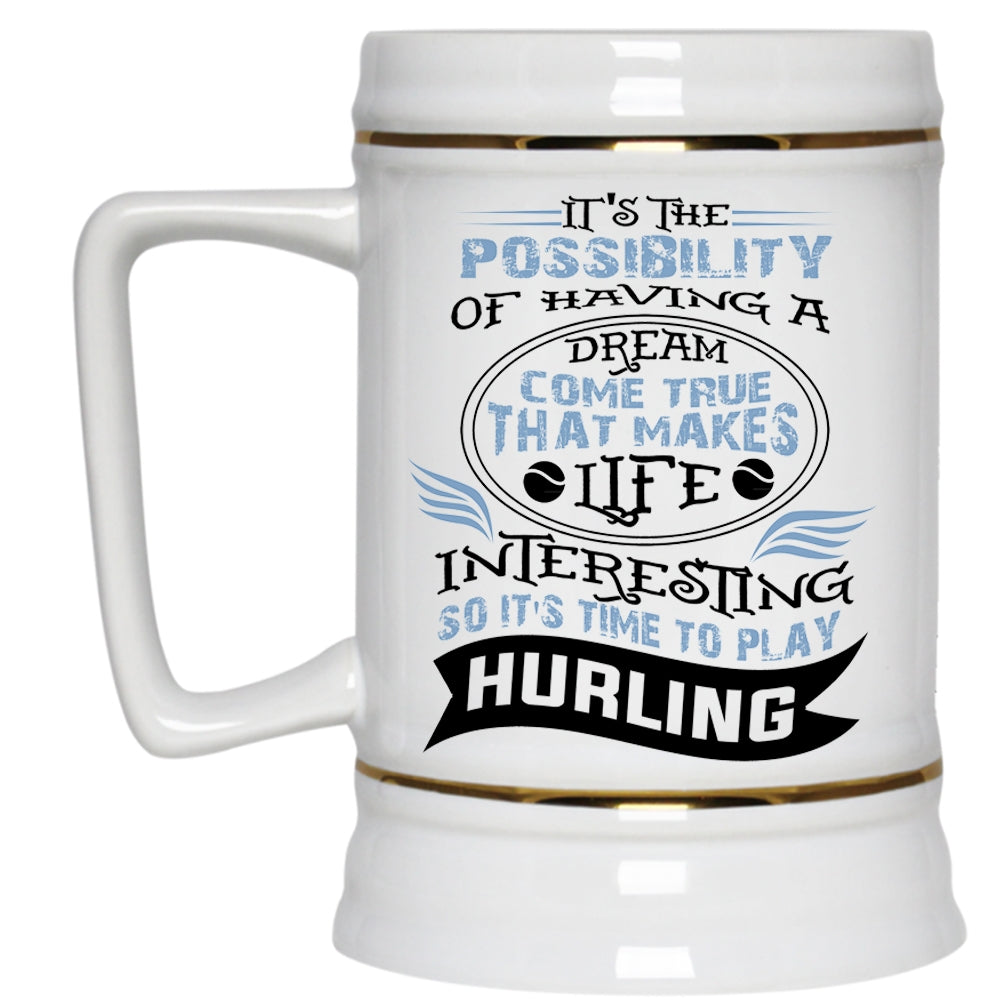 Funny Beer Stein 22oz, Life Interesting So It's Time To Play Hurling Beer Mug