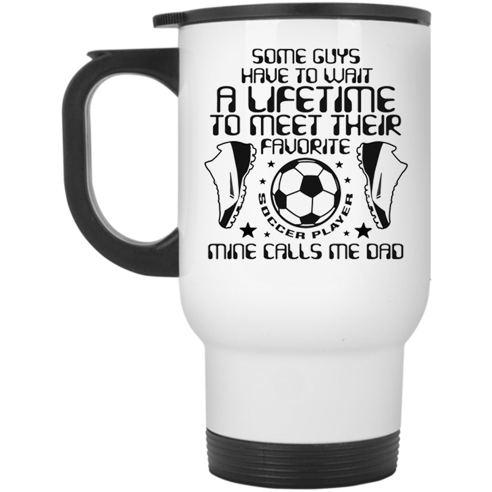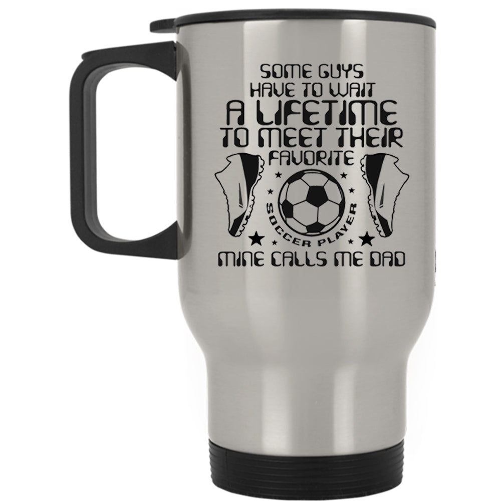 Funny Daddy Travel Mug, My Favorite Soccer Player Calls Me Dad Mug