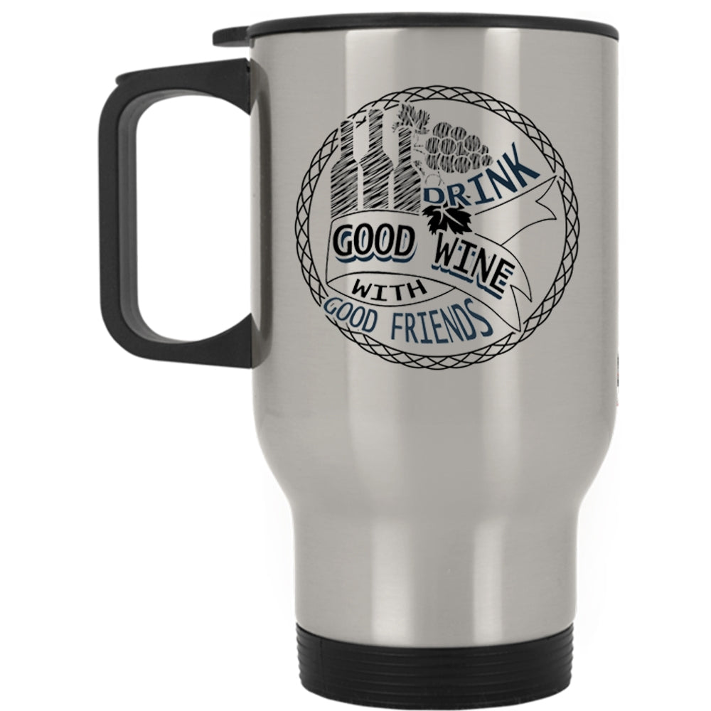 Funny Drink Wine Travel Mug, Drink Good Wine With Good Friends Mug