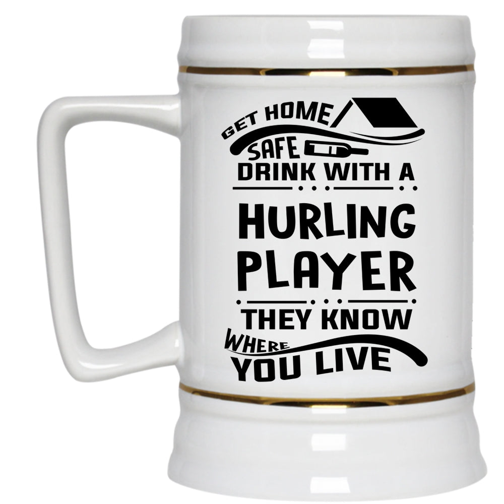 Funny Drinking Beer Stein 22oz, Get Home Safe Drink With A Hurling Player Beer Mug