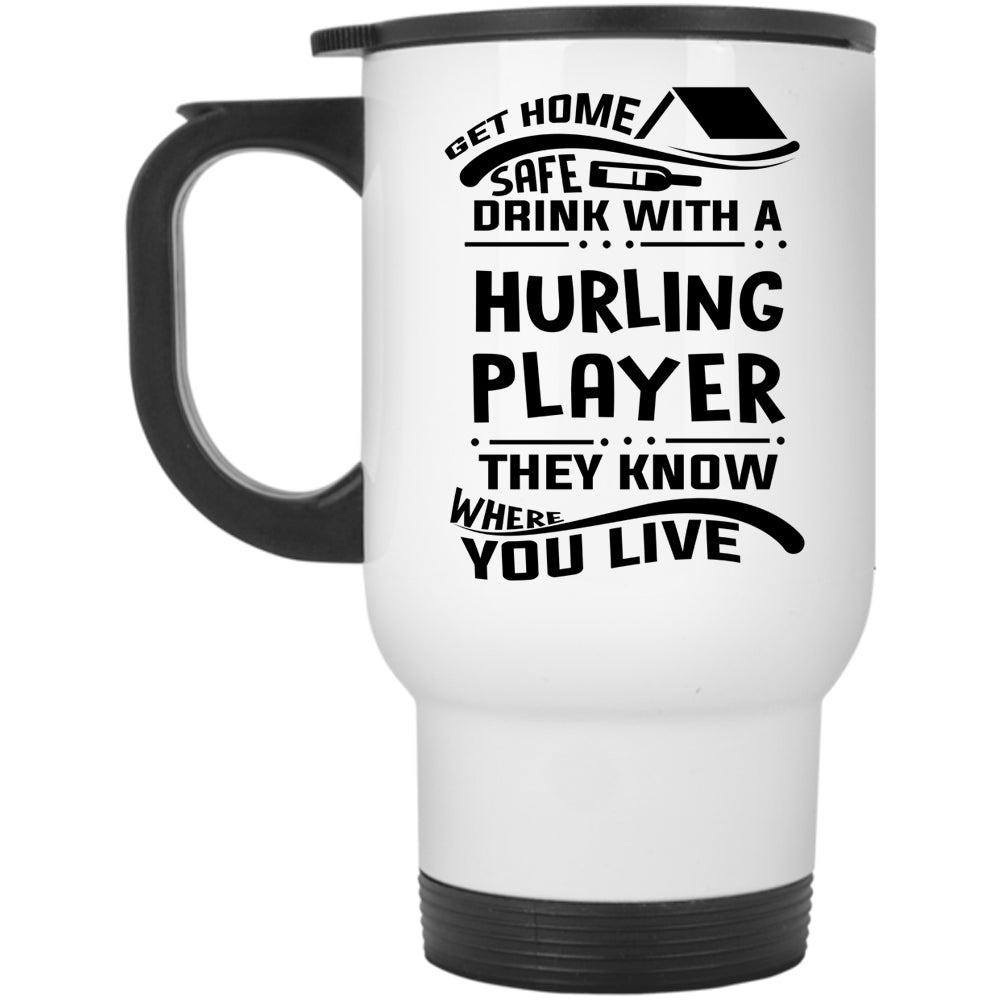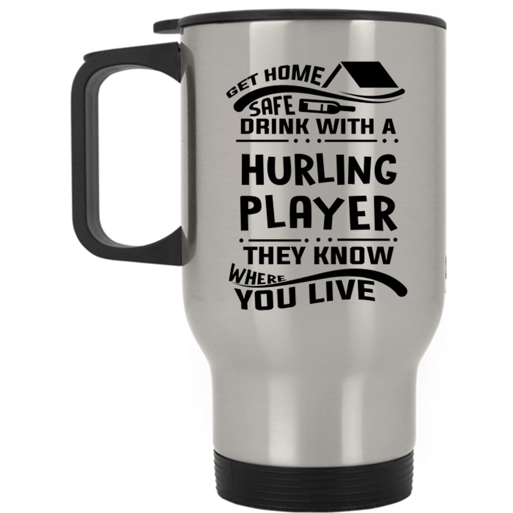 Funny Drinking Travel Mug, Get Home Safe Drink With A Hurling Player Mug