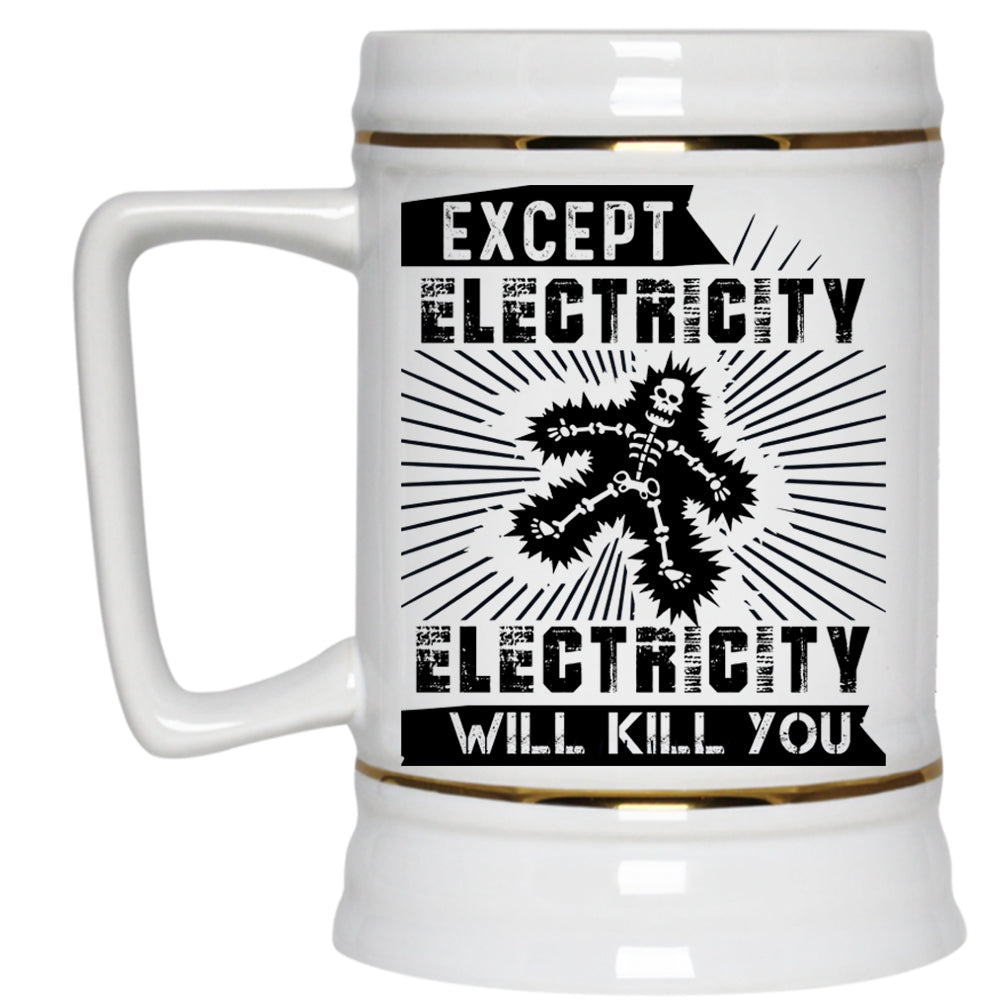 Funny Electricians Beer Stein 22oz, Except Electricity Beer Mug