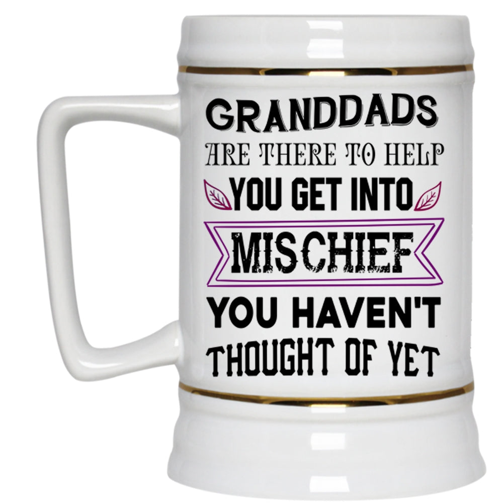 Funny Grandfather Beer Stein 22oz, Granddads Are There To Help Beer Mug