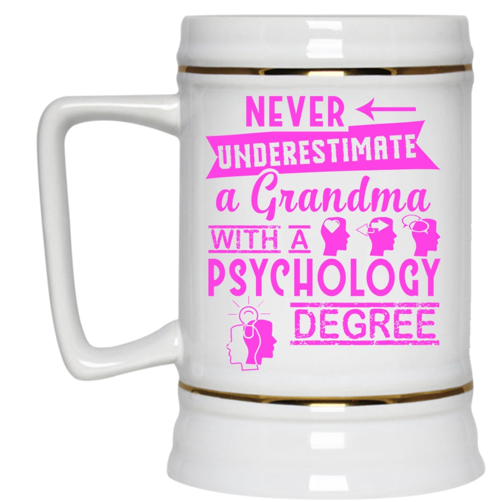 Funny Grandmas Beer Stein 22oz, A Grandma With A Psychology Degree Beer Mug