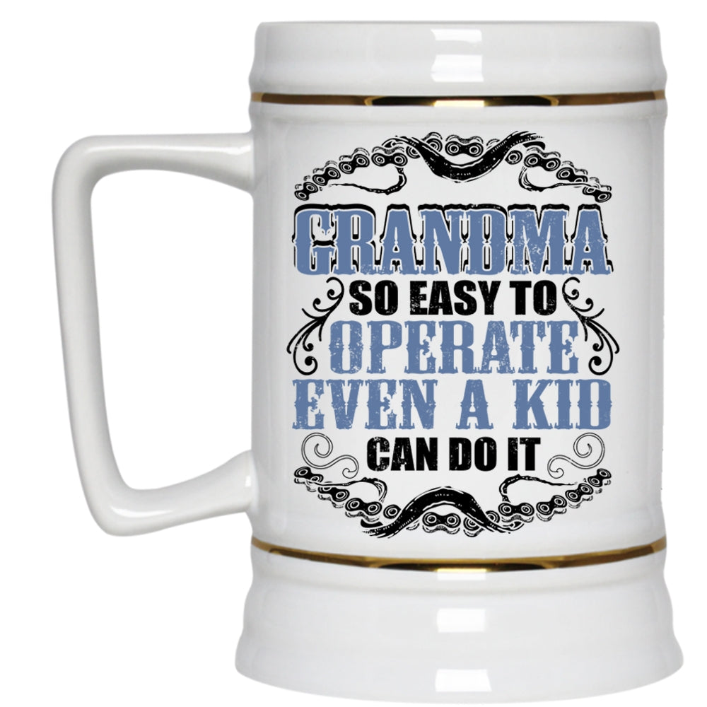 Funny Grandmas Beer Stein 22oz, Grandma So Easy To Operate Beer Mug