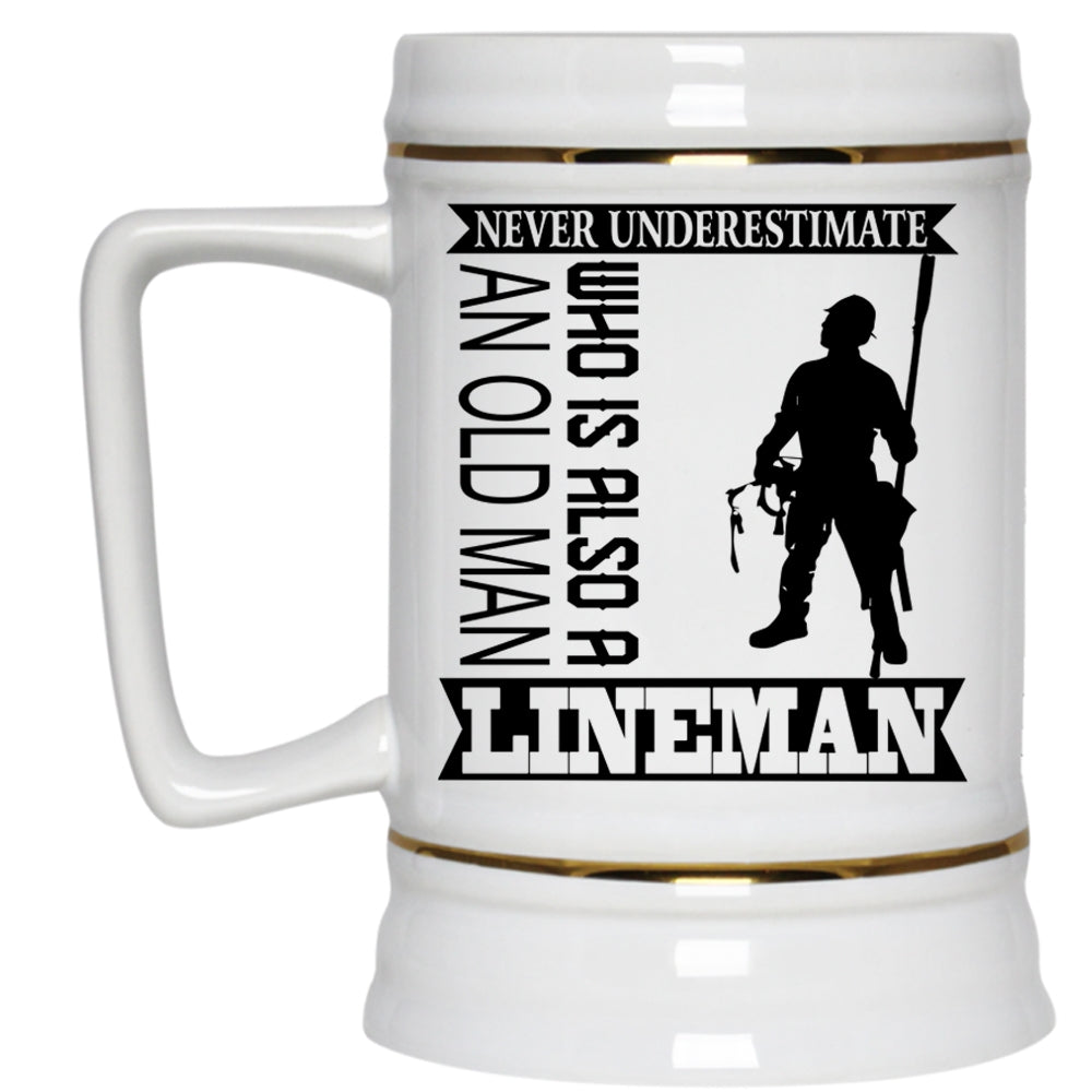 Funny Grandpa Beer Stein 22oz, An Old Man Is A Lineman Beer Mug