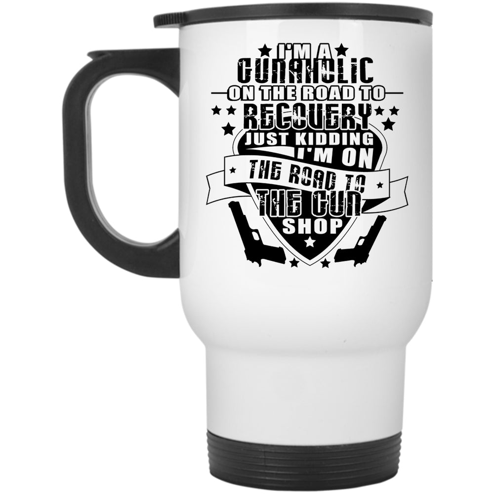 Funny Gunner Travel Mug, I'm A Gunaholic On The Road Mug