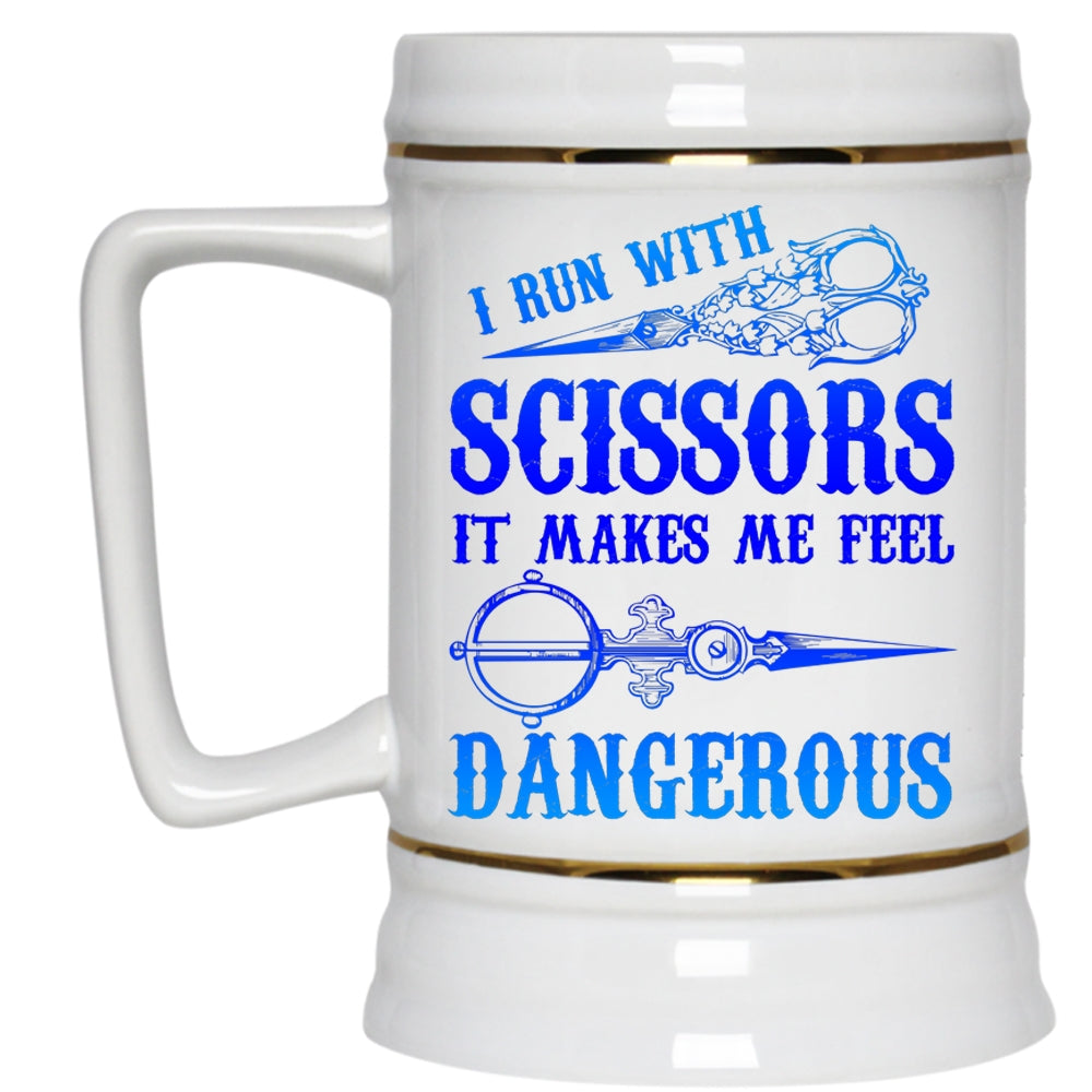 Funny Hairstylist Beer Stein 22oz, I Run With Scissors Beer Mug