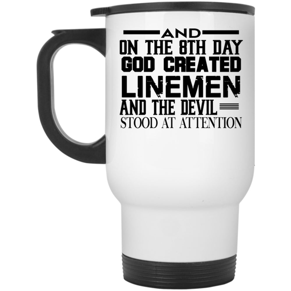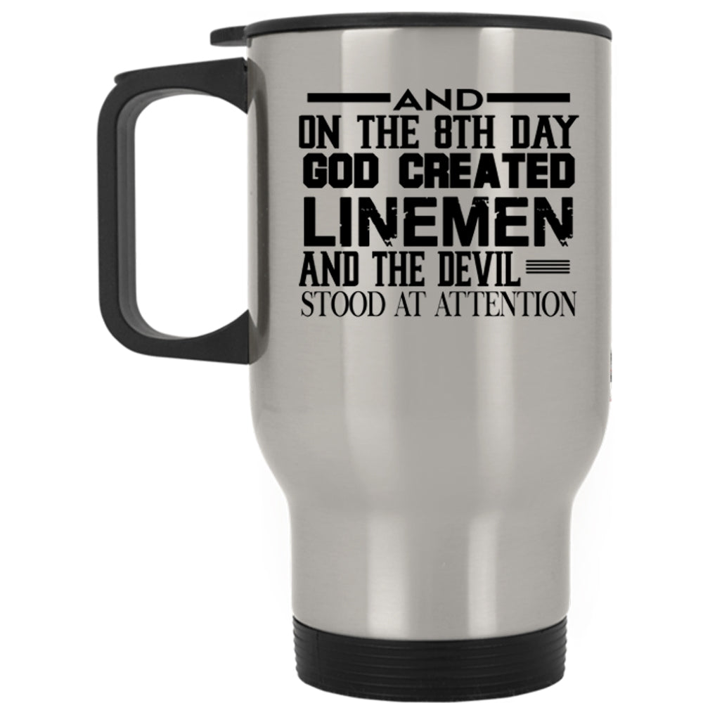 Funny Lineman Travel Mug, On The 8th Day God Created Linemen Mug