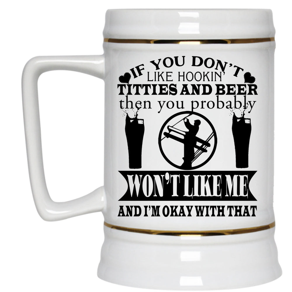 Funny Linemen Beer Stein 22oz, If You Don't Like Hooking Titties And Beer Beer Mug