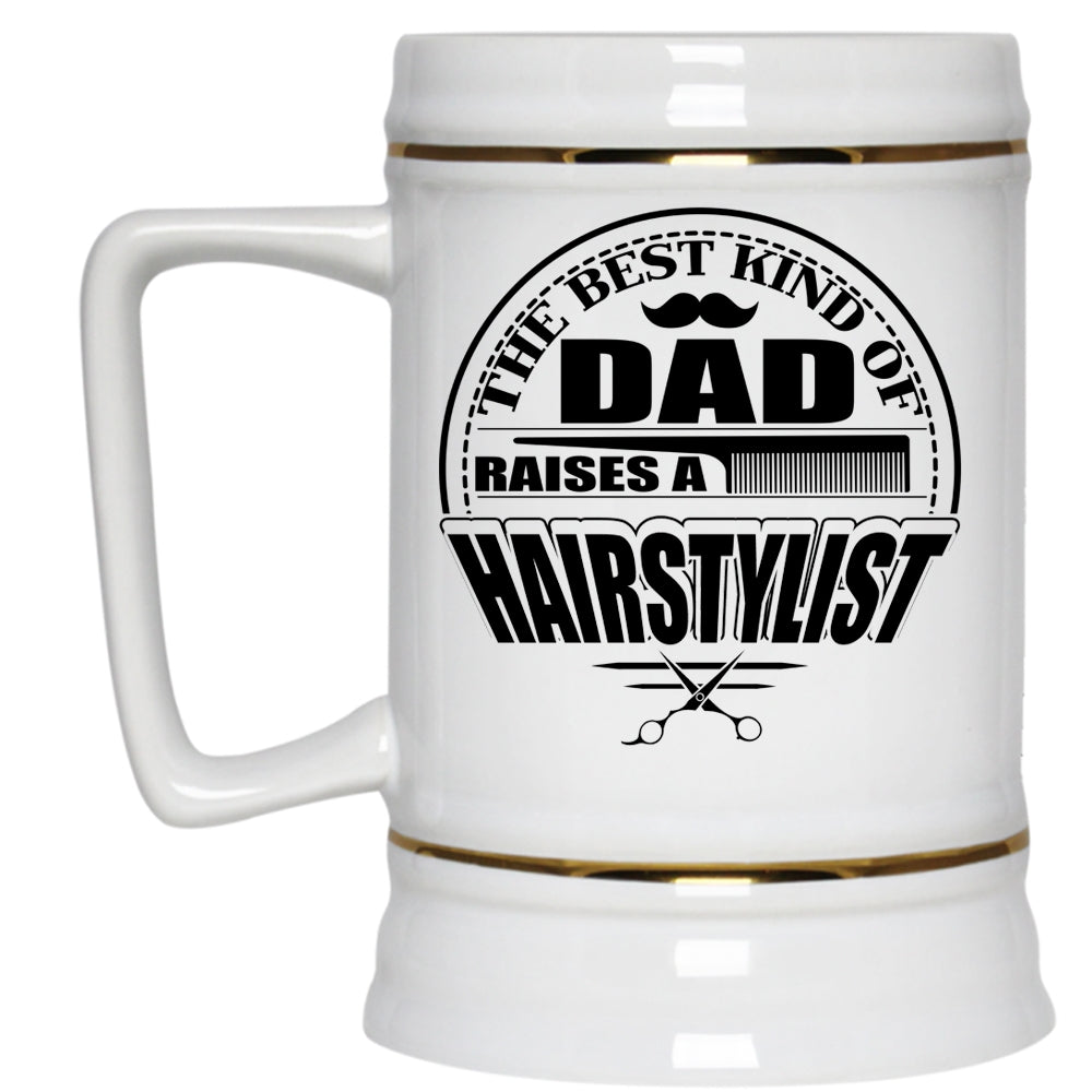Funny Papa Beer Stein 22oz, The Best Kind Of Dad Raises A Hairstylist Beer Mug