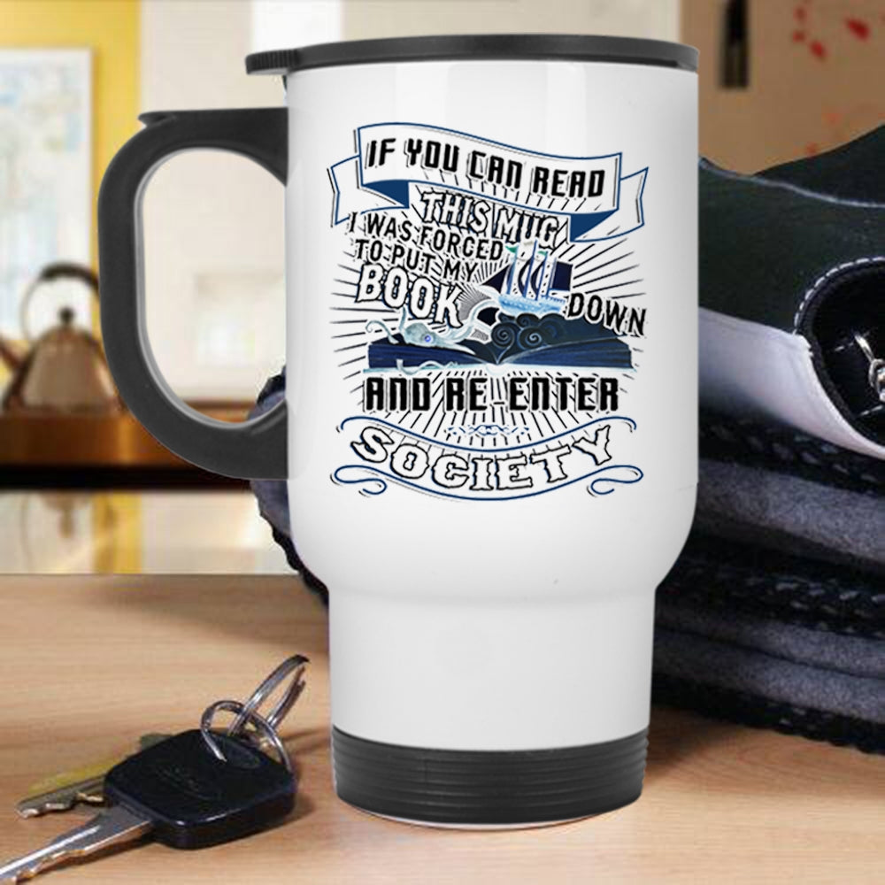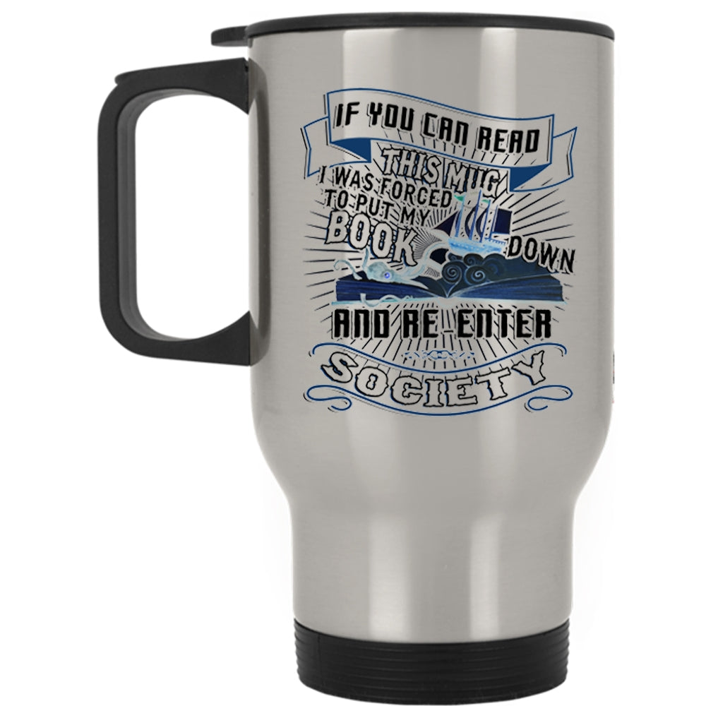 Funny Reading Travel Mug, I Was Forced To Put My Book Mug