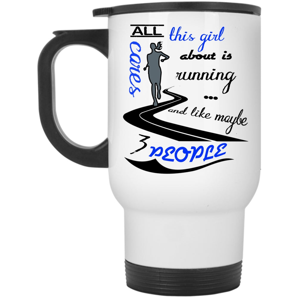 Funny Running Travel Mug, All This Girl Cares About Is Running Mug