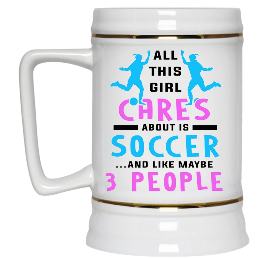 Funny Soccer Beer Stein 22oz, All This Girl Cares About Is Soccer Beer Mug