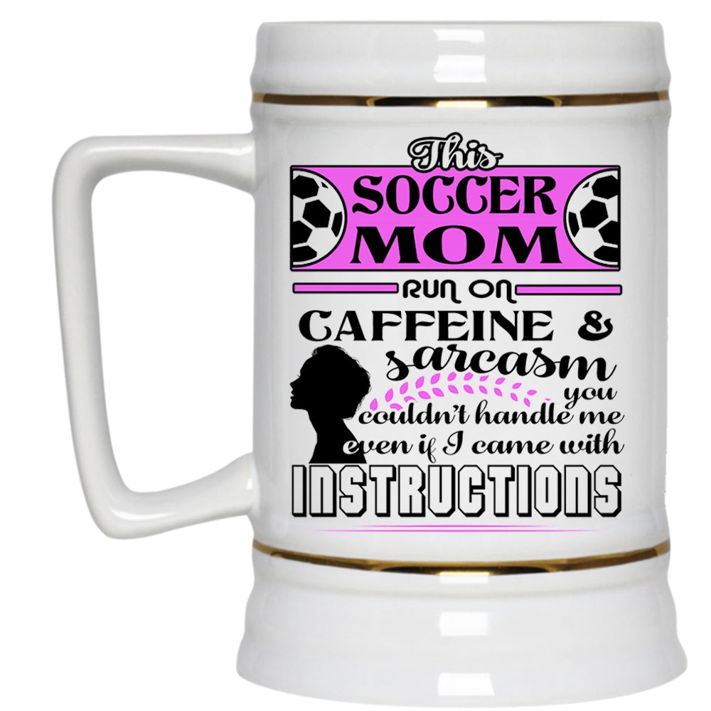 Funny Soccer Mom Beer Stein 22oz, This Soccer Mom Run On Caffeine Beer Mug