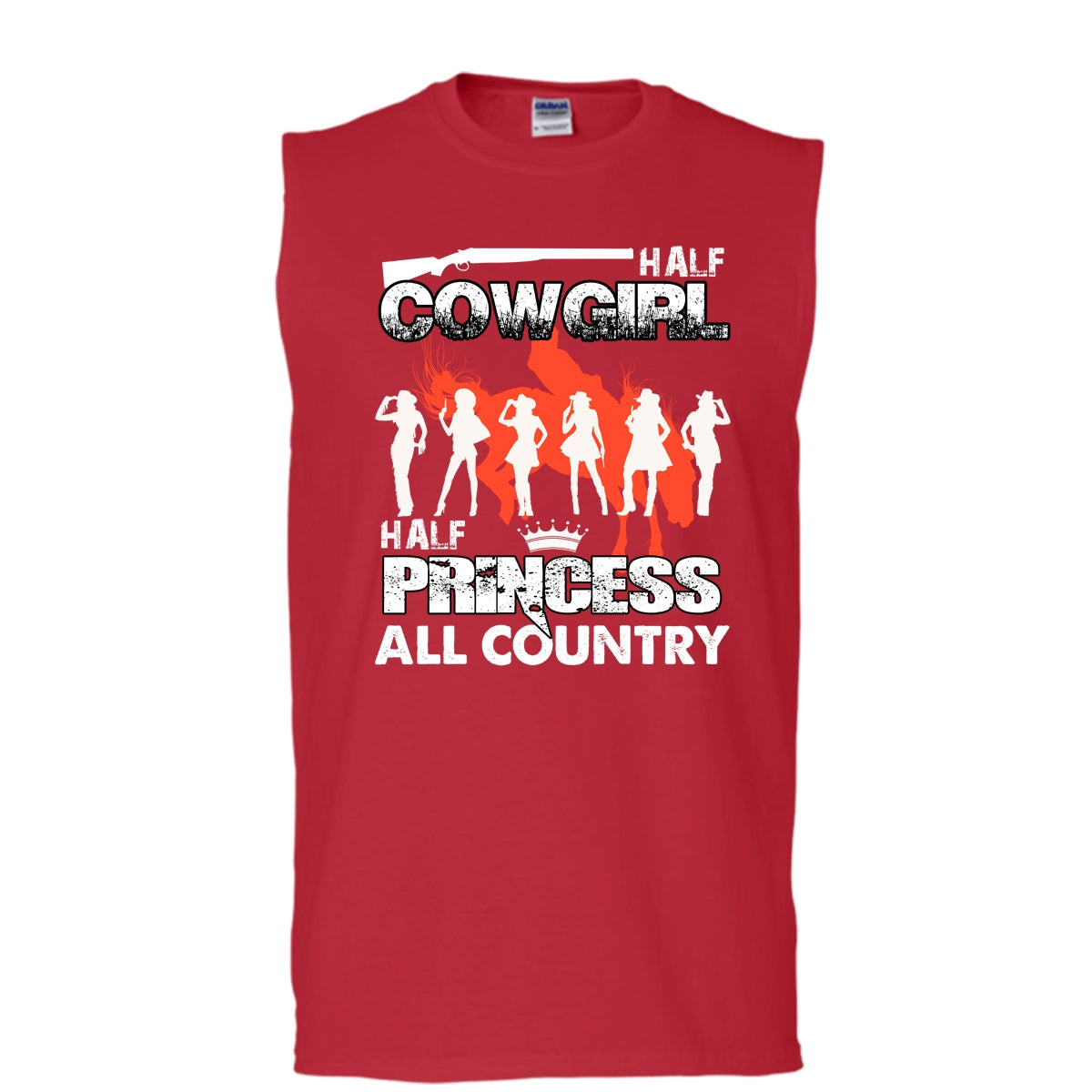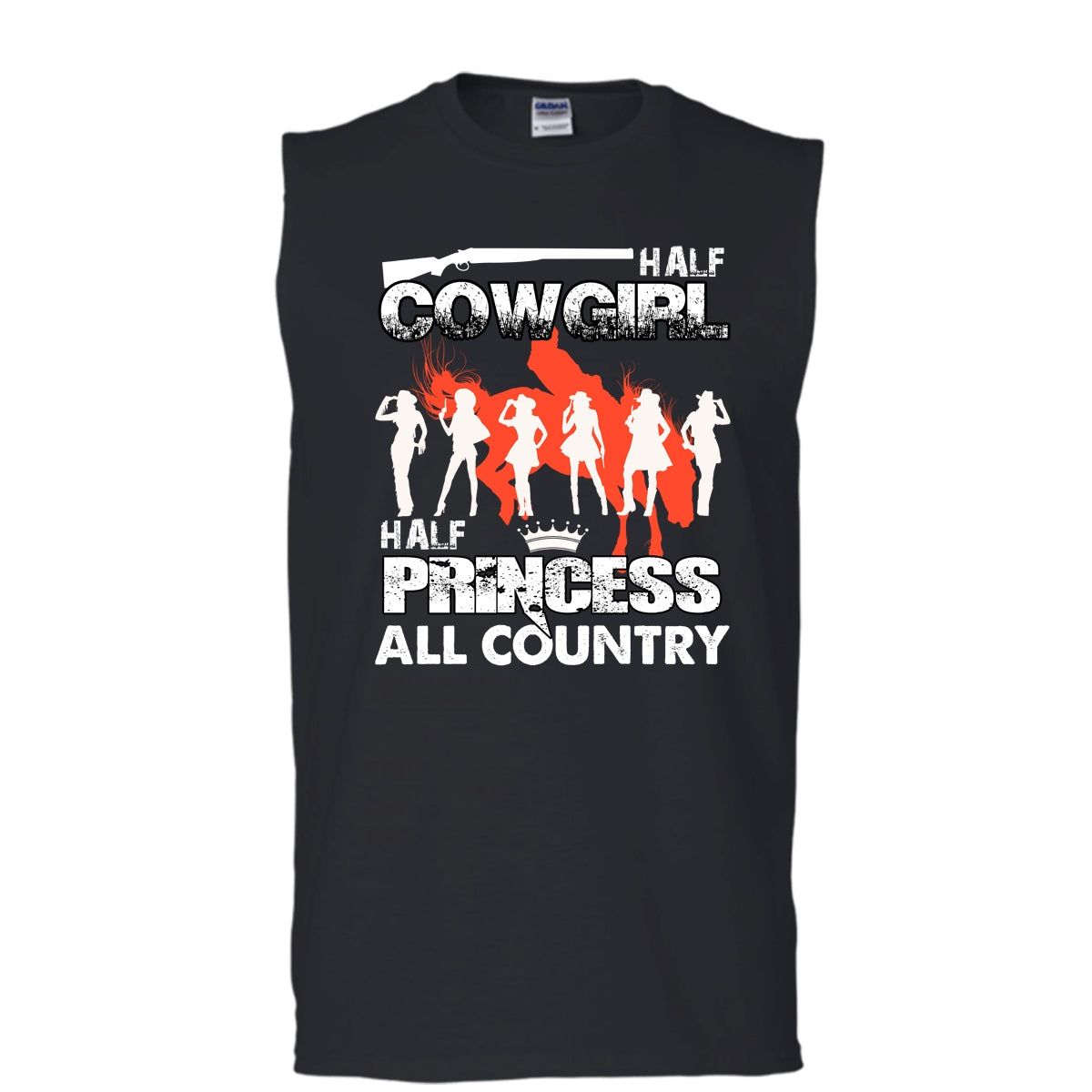 Half Cowgirl T Shirt, Half Princess T Shirt, Cool T Shirt (Men's Cotton Sleeveless)