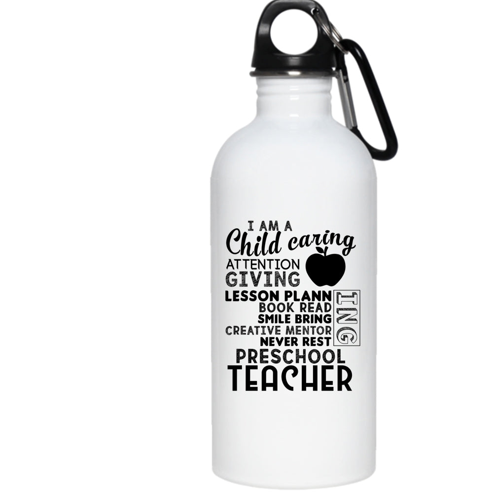 I Am A Child Caring Attention Giving 20 oz Stainless Steel Bottle,I Am A Preschool Teacher Outdoor Sports Water Bottle