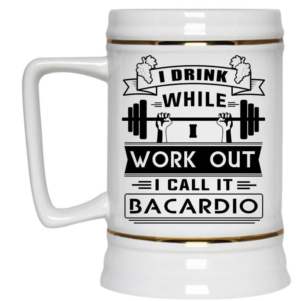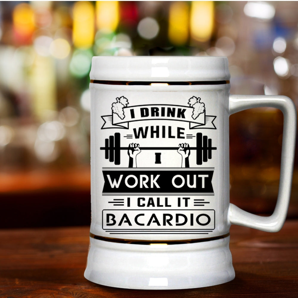 I Call It Bacardio Beer Stein 22oz, I Drink While I Wourk Out Beer Mug