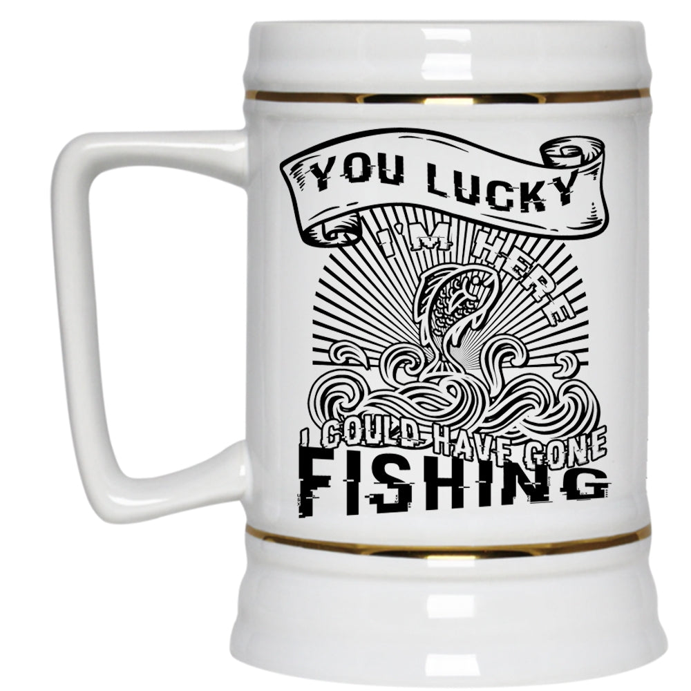 I Could Have Gone Fishing Beer Stein 22oz, You Lucky I'm Here Beer Mug