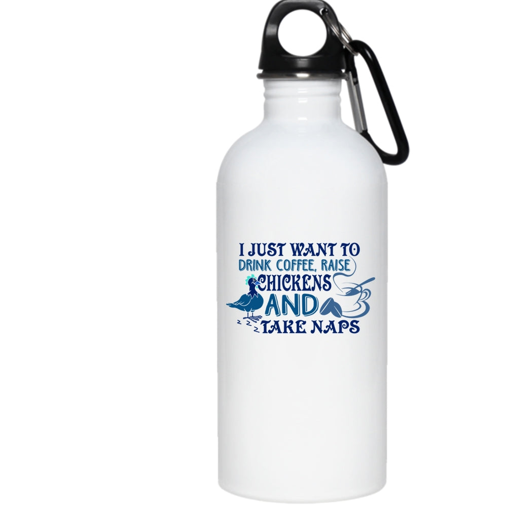 I Just Want To Drink Coffee 20 oz Stainless Steel Bottle,Raise Chickens And Take Naps Outdoor Sports Water Bottle