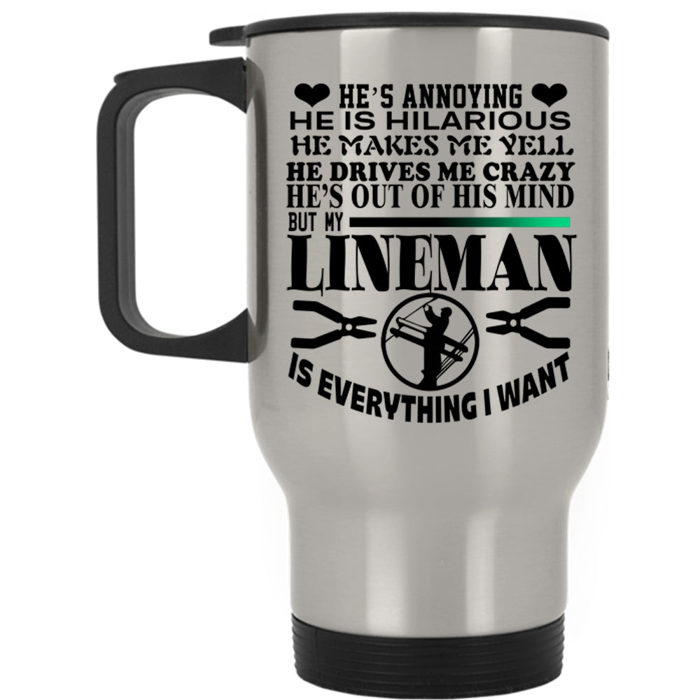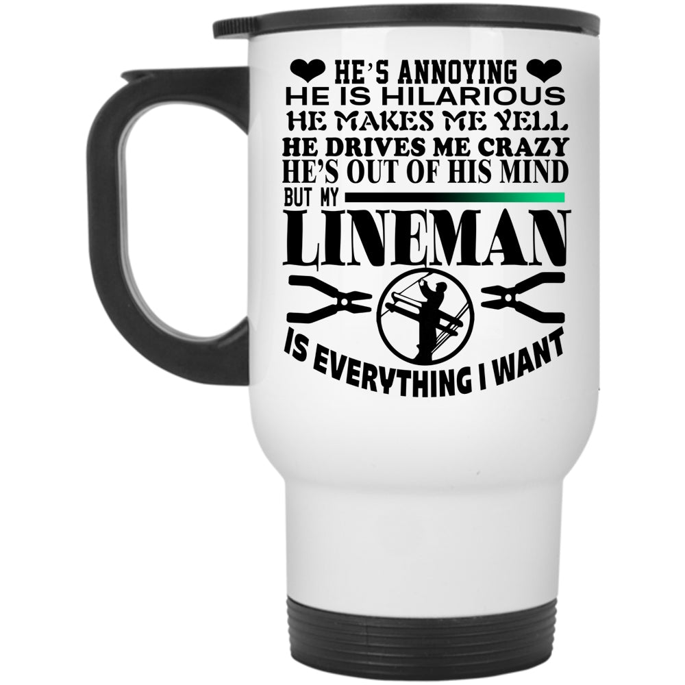 I Love My Linemen Travel Mug, My Lineman Is Everything I Want Mug