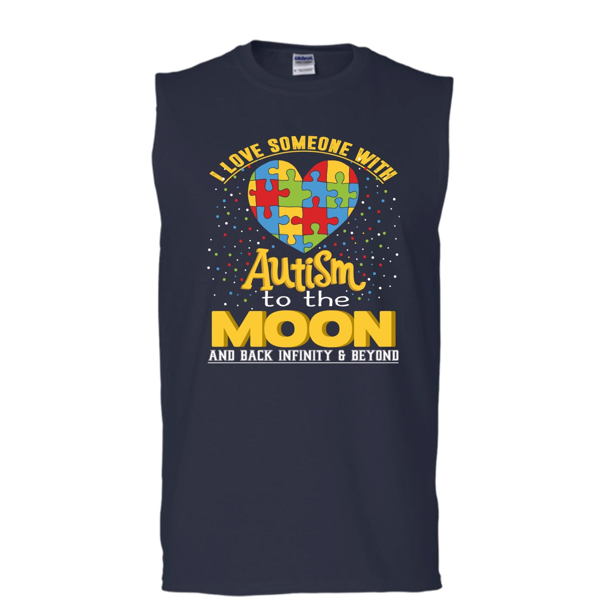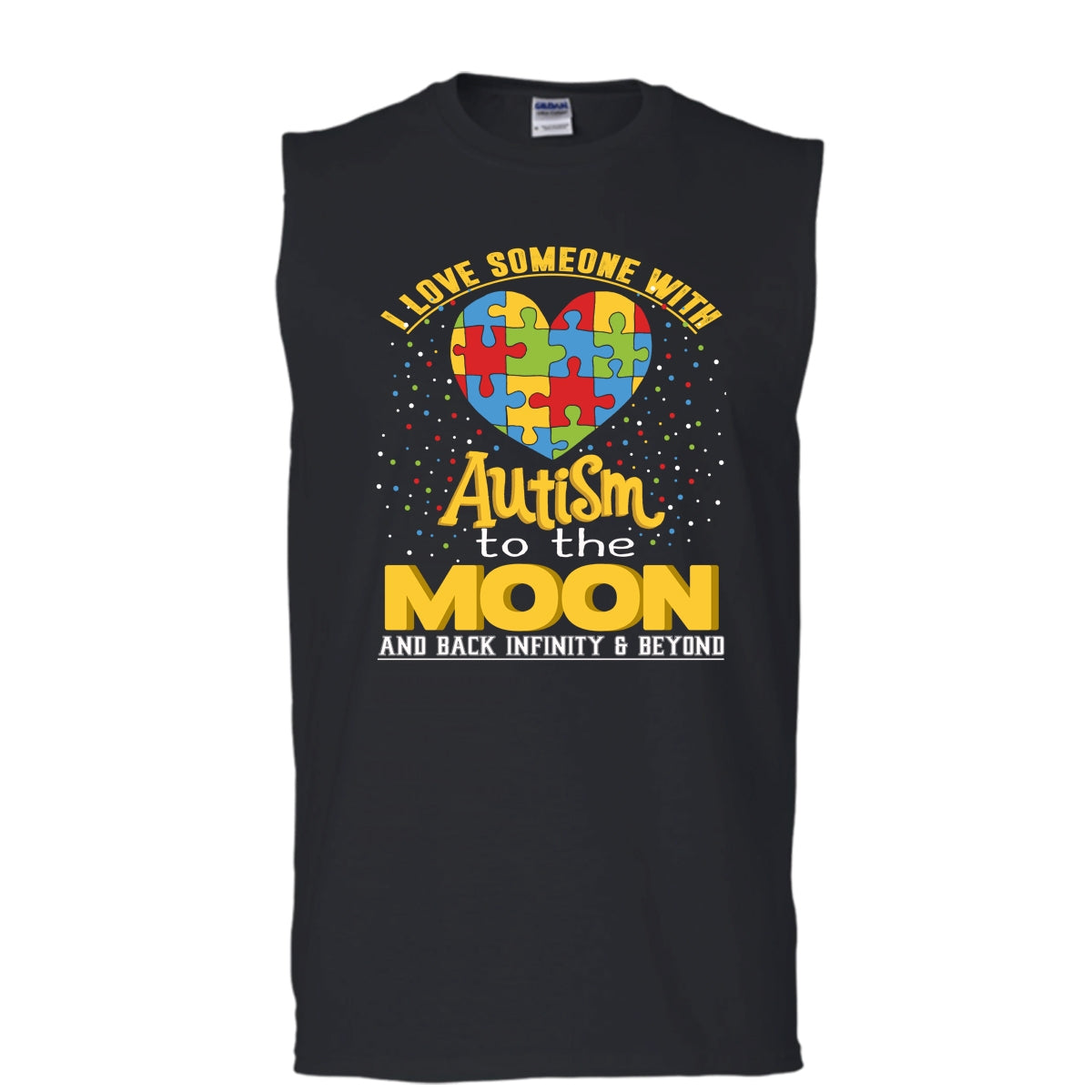 I Love Someone Autism T Shirt, To The Moon And Back Tank Top (Men's Cotton Sleeveless)