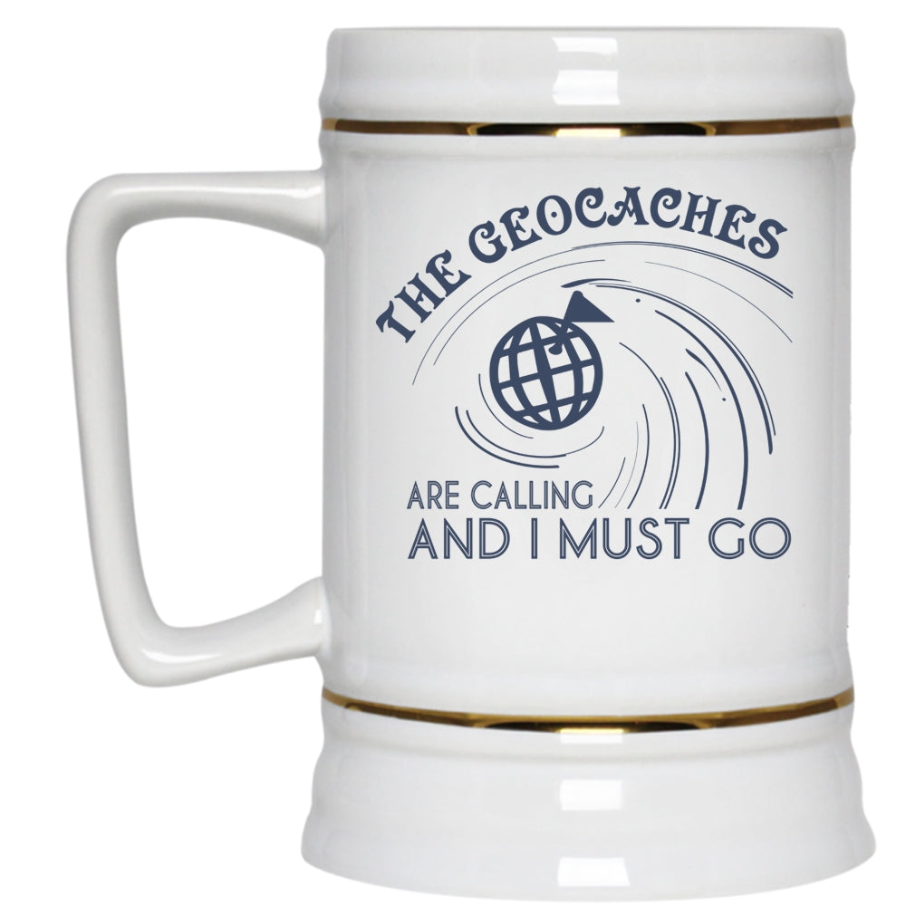 I Must Go Beer Stein 22oz, The Geaocaches Are Calling Beer Mug