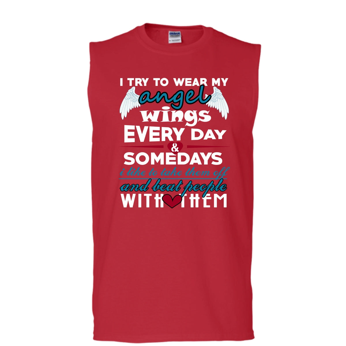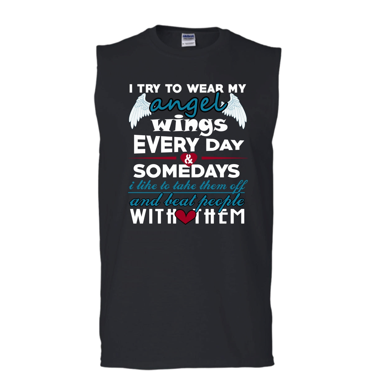 I Try To Wear My Angel Wings T Shirt, Somedays I Like To Take Them Off Tank Top (Men's Cotton Sleeveless)