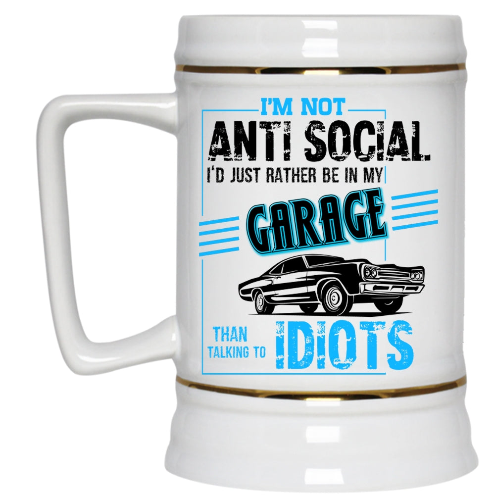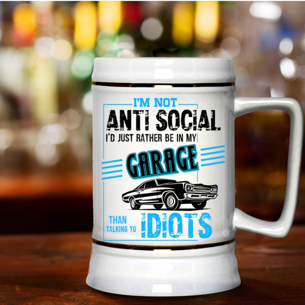 I'd Just Rather Be In My Garage Beer Stein 22oz, I'm Not Anti Social Beer Mug