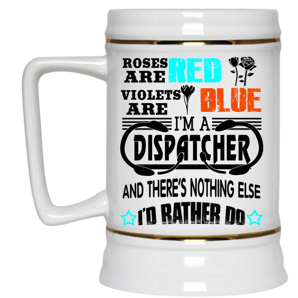 I'm A Dispatcher Beer Stein 22oz, Roses Are Red Violets Are Blue Beer Mug