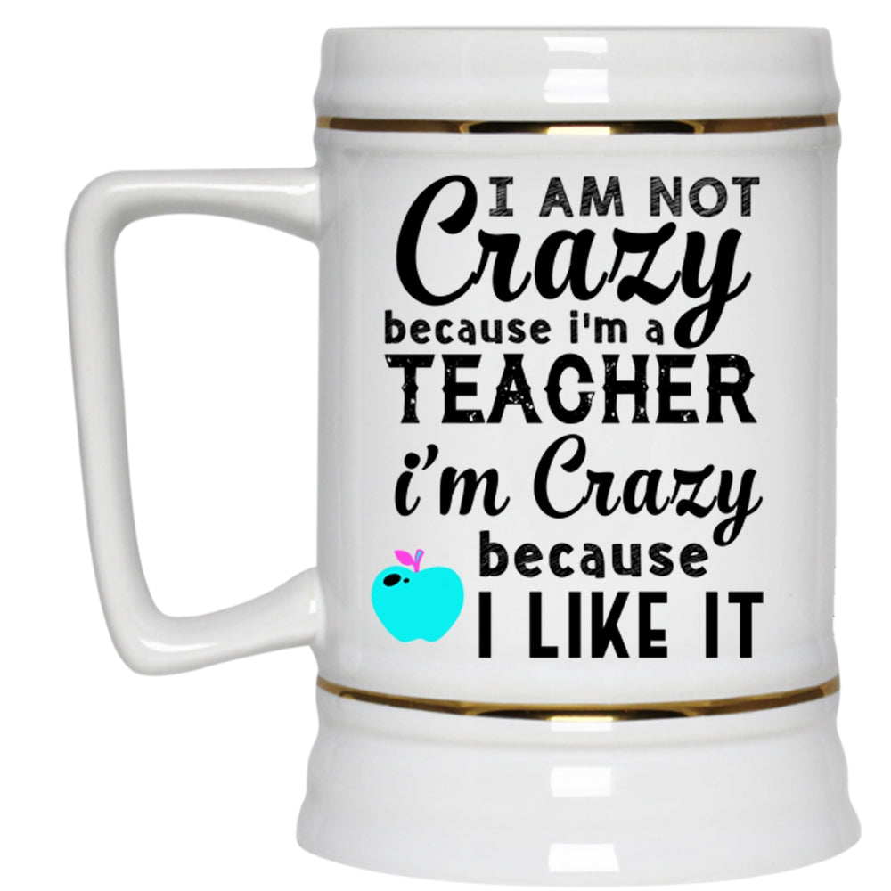 I'm Crazy Because I Like It Beer Stein 22oz, I Am Not Crazy Because I'm A Teacher Beer Mug