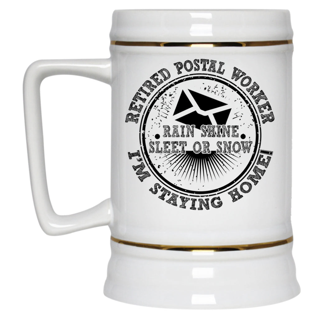 I'm Staying Home Beer Stein 22oz, Retired Postal Worker Beer Mug