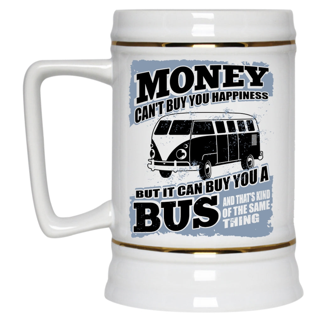 It Can Buy You A Bus Beer Stein 22oz, Money Can't Buy Happiness Beer Mug