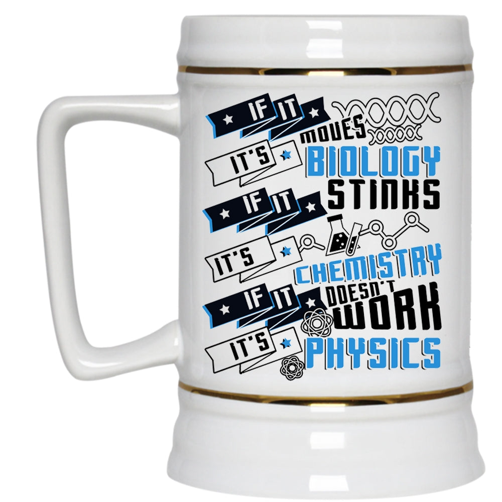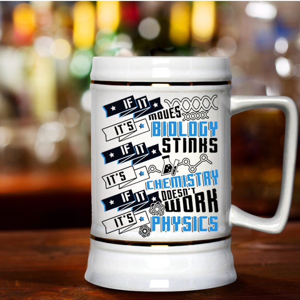 It's Chemistry It's Physics Beer Stein 22oz, If It Moves It's Biology Beer Mug