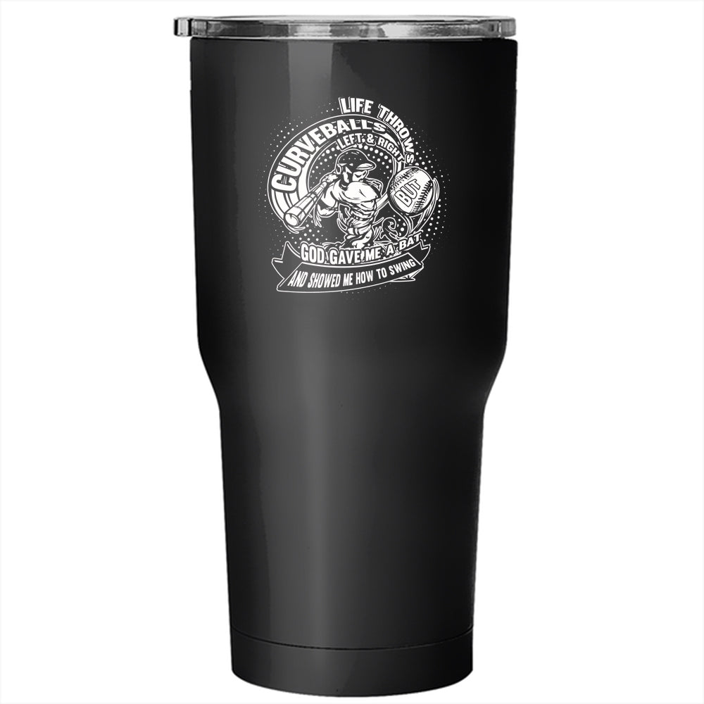 Life Throws Curveballs Left And Right Tumbler 30 oz Stainless Steel, Funny Baseball Player Travel Mug